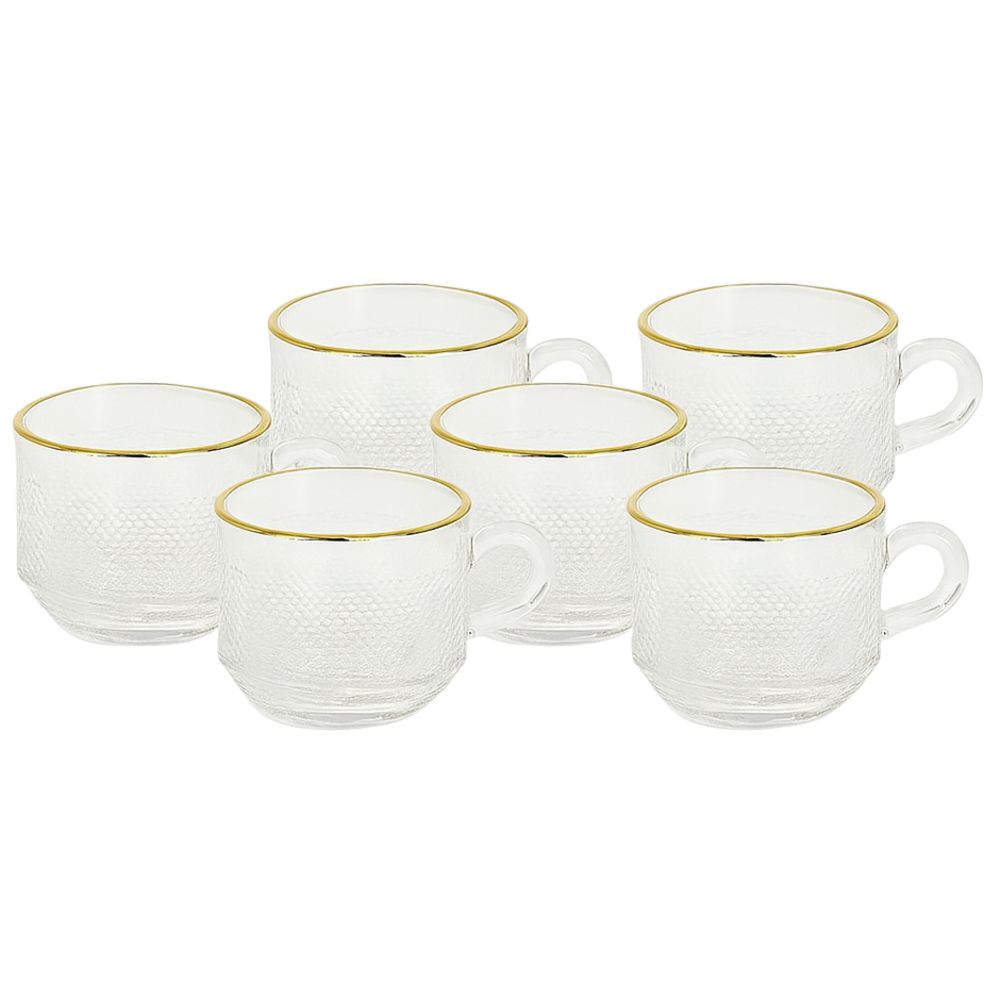 Elegância e sofisticação para a sua pausa do café! Este conjunto de xícaras é produzido em vidro transparente de alta qualidade, que realça a cor e a cremosidade da sua bebida favorita. Cada xícara possui capacidade de 90ml, tamanho ideal para servir cafés expressos e outras variações. O grande destaque fica por conta da borda dourada delicada, que adiciona um toque refinado e exclusivo à peça, tornando-a perfeita tanto para o uso diário quanto para ocasiões especiais.