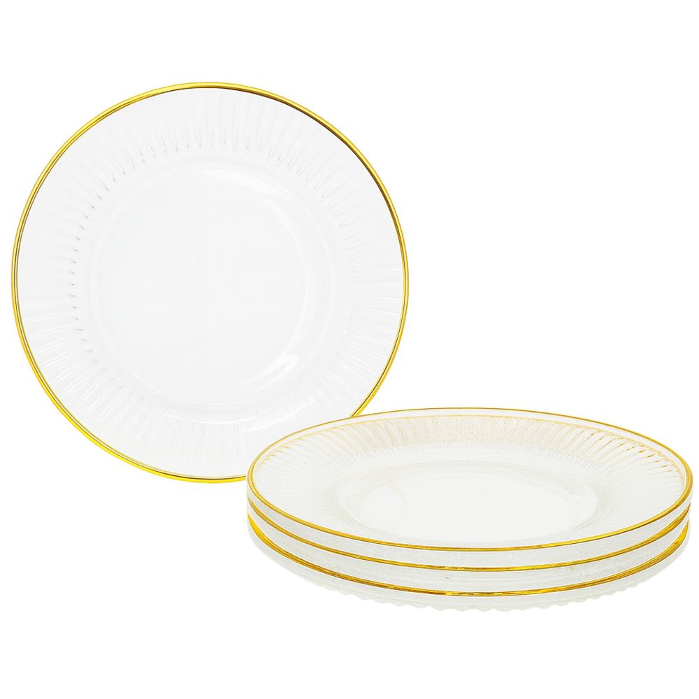 Conj. de Pratos de Sobremesa Vidro 4Pçs Borda Dourada Quanhe