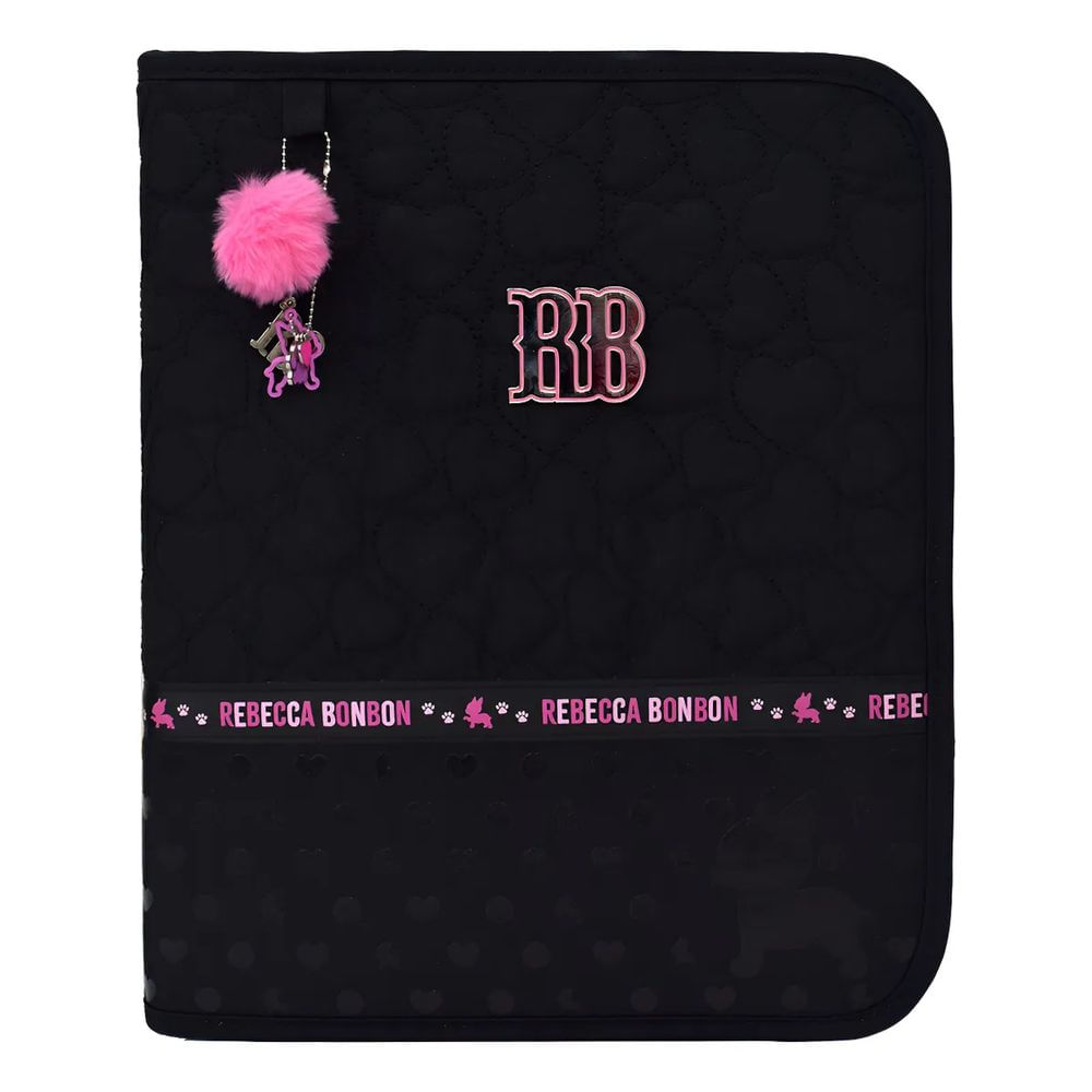 Possui um design requintado, cheio de detalhes com aplicação de costura, logo em metal e chaveiro Rebecca Bonbon. Contém ferragem fixa com 4 argolas, 10 divisórias e 48 folhas com gramatura de 56g.