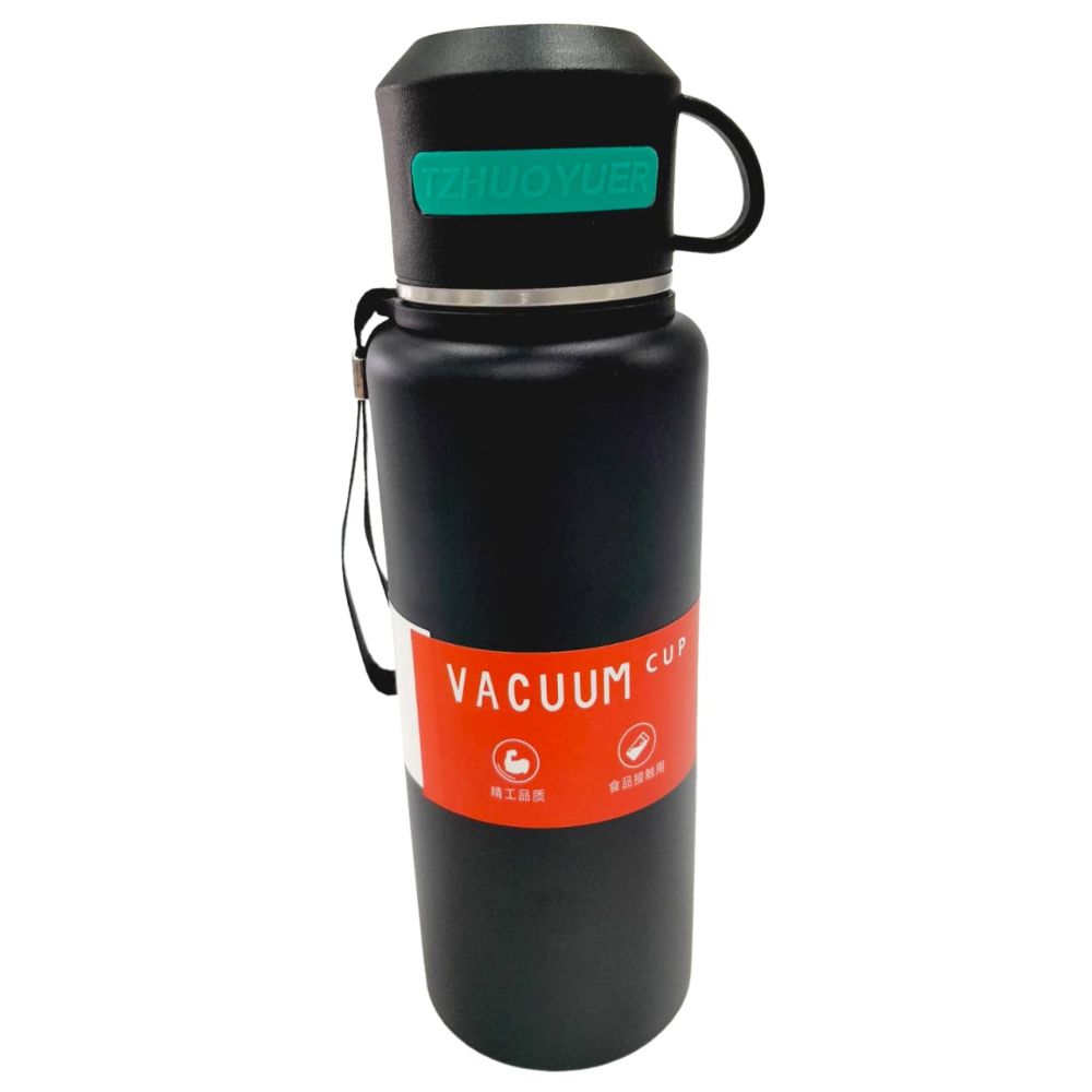 Garrafa Térmica Parede Dupla Aço Inox Preta 1L - Quanhe