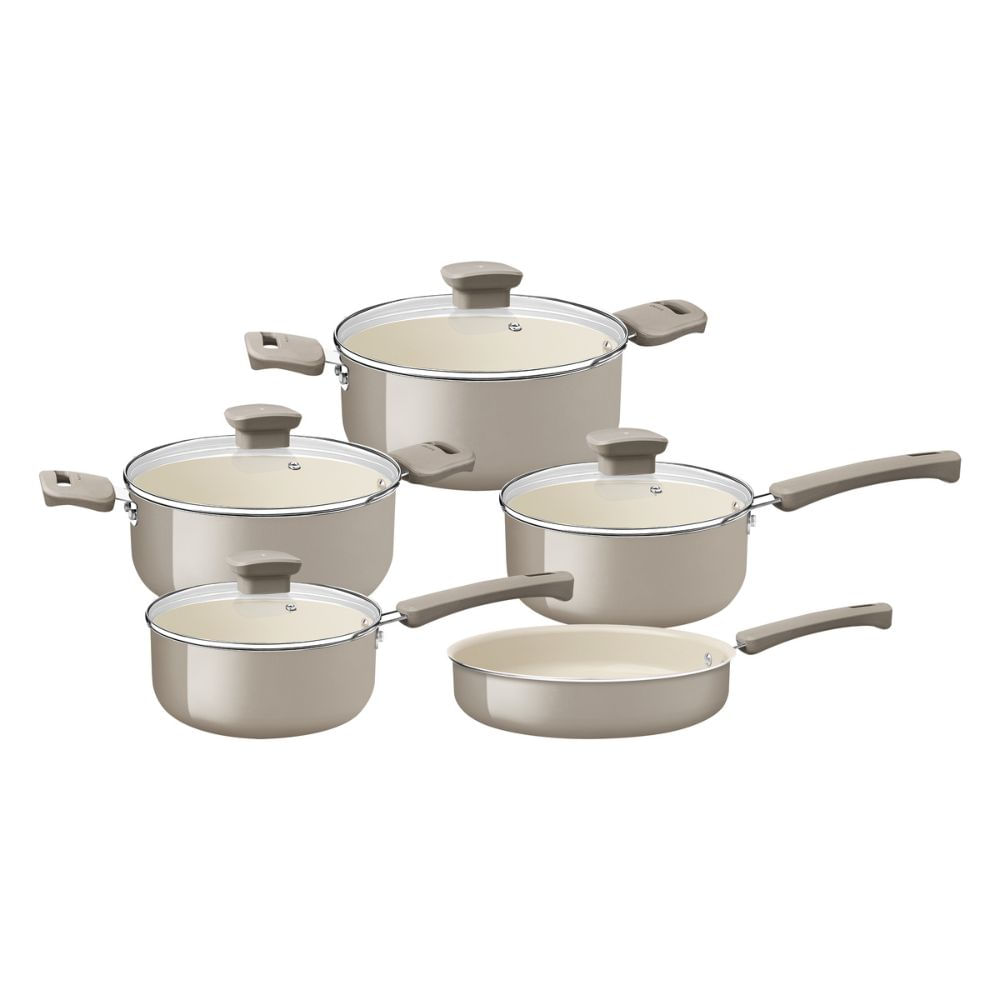 Jogo de Panelas 5 peças Cerâmica Veronese Bege - Tramontina