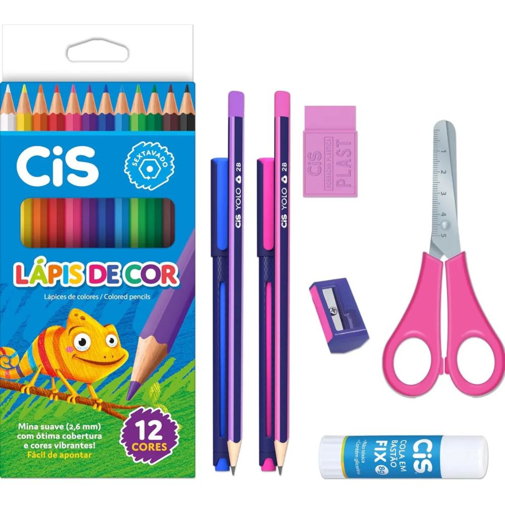 O kit escolar Yolo com 9 peças da Cis é o conjunto perfeito para acompanhar estudantes com estilo, praticidade e funcionalidade ao longo de todo o ano letivo. Com design moderno e jovem, esse kit reúne os principais itens essenciais para as tarefas do dia a dia, combinando qualidade, organização e durabilidade em um só produto.