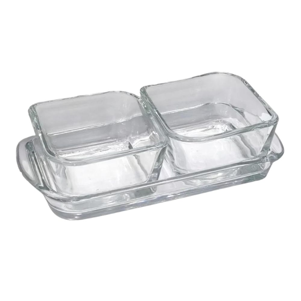 Kit para Petisco Baroque 3 Peças em Vidro PD1279GCL - Bono