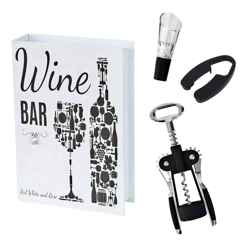 Kit para Vinho c/ 03 Peças Livro Decorativo N226159-0 Quanhe